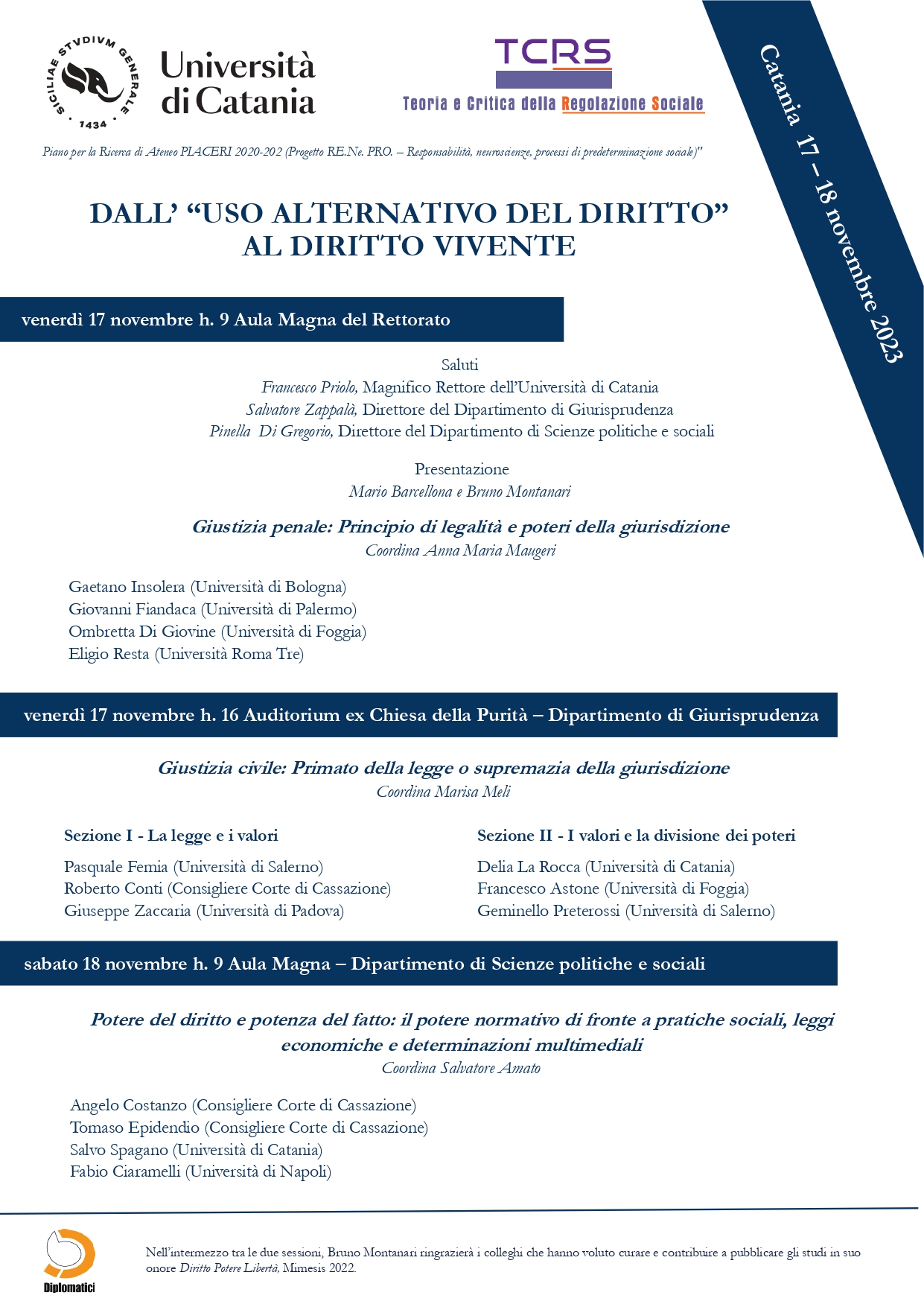 venerdì 17 novembre h. 16 Auditorium ex Chiesa della Purità – Dipartimento di Giurisprudenza